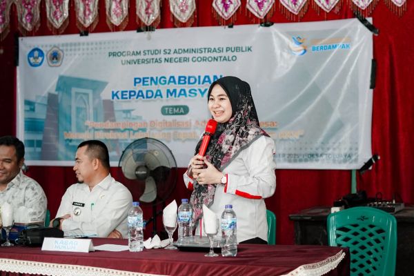 Sementara itu, Koordinator Program Studi Magister Administrasi Publik UNG menekankan bahwa kegiatan ini merupakan wujud konkret penerapan ilmu administrasi publik melalui program Tri Dharma Perguruan Tinggi. “Kami terus berupaya memperkuat mutu akademik dan relevansi keilmuan dengan realitas birokrasi lokal yang menjadi bagian integral dari Capaian Pembelajaran Mata Kuliah (CPMK) yang diampuh oleh dosen pengajar. Melalui kegiatan pengabdian ini, mahasiswa dapat langsung berinteraksi dengan aparatur desa, membantu mengidentifikasi permasalahan administratif, serta merancang solusi digital yang aplikatif dan dapat dijalankan dengan cepat, tepat dan memudahkan proses layanan,” jelasnya.